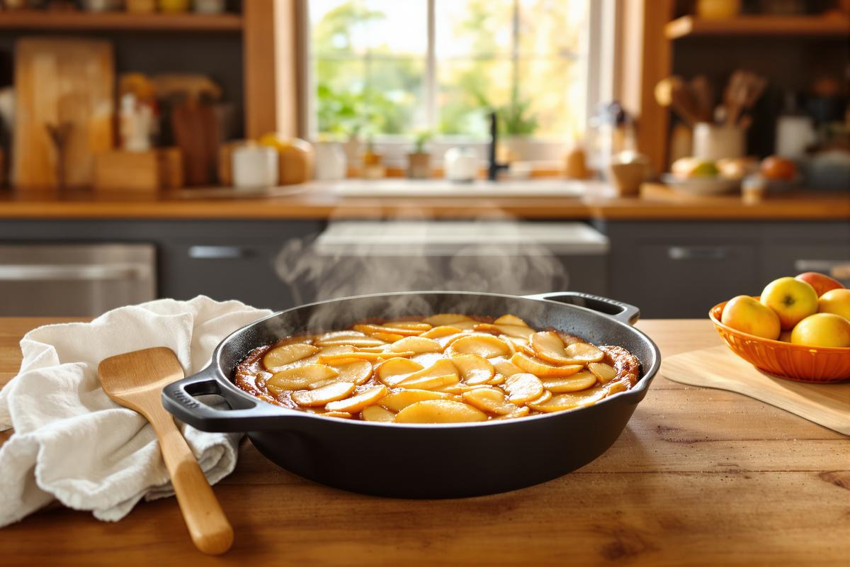 Envie d’un dessert moelleux, fruité et parfumé à la cannelle, mais sans allumer le four ? Ce gâteau pommes-cannelle à la poêle va changer votre vision de la pâtisserie maison. Simple à préparer, bluffant à la dégustation, et surtout, réalisable avec des ingrédients du placard, c’est le parfait équilibre entre tradition et ingéniosité.